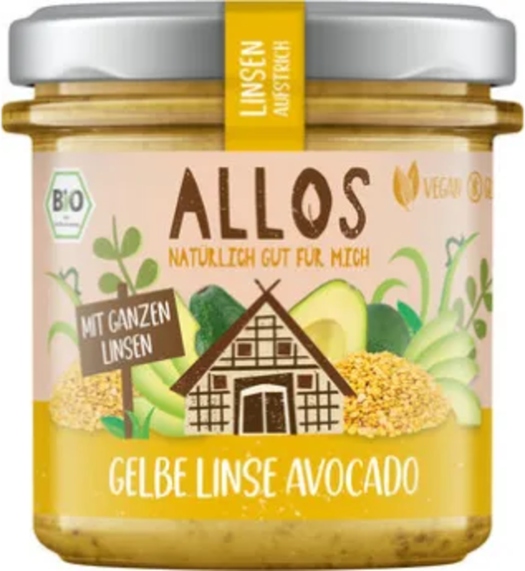 Vegan biologische linzenspread gemaakt van gele linzen, avocado en geselecteerde kruiden.