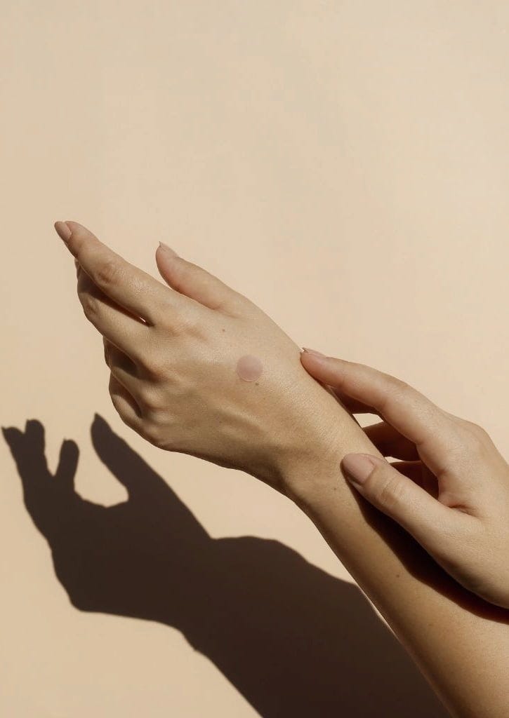 - Breng je zonnebrandcrème zoals gewoonlijk aan en wacht een paar minuten. Zodra de UV-indicatorsticker transparant wordt, ben je optimaal beschermd.