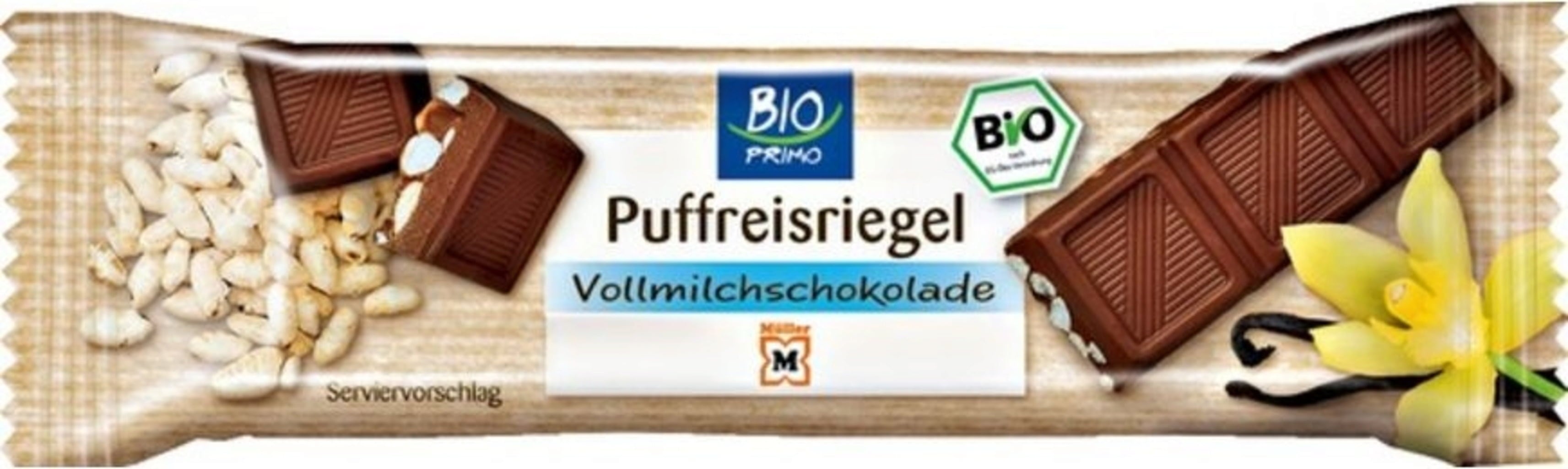 90 % melkchocolade[1] (hele rietsuiker[1], rohrzucker[1], cacaoboter[1], melkpoeder[1], Cacaomassa[1], sojalecithine (E322)[2], bourbon vanille[1], 10 % rijst[1]), 37 % minimaal cacaogehalte[1]