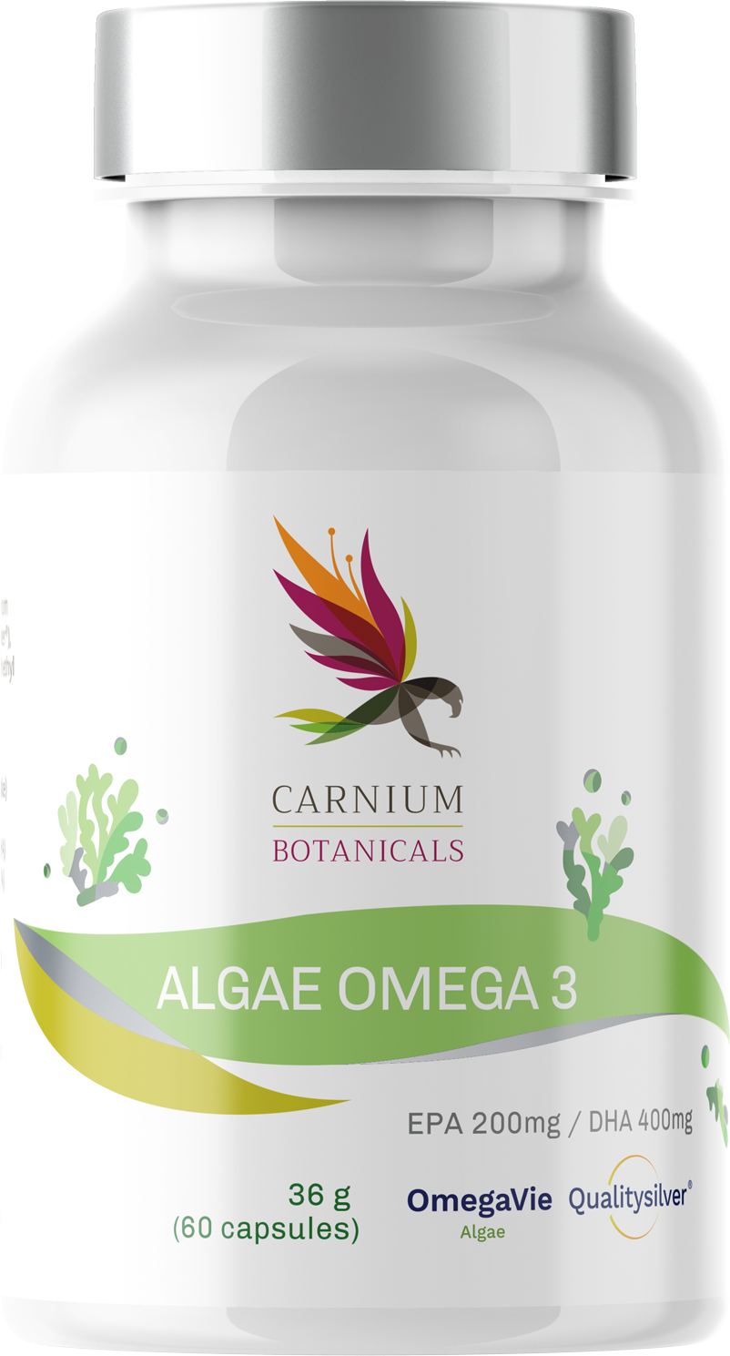 De Algae Omega-3 capsules van Carnium Botanicals bevatten plantaardige omega 3 uit microalgen. De capsules zijn daarom ook geschikt voor een vegan levensstijl. De capsules zijn ook vrij van gluten, lactose, conserveringsmiddelen en toegevoegde suiker.