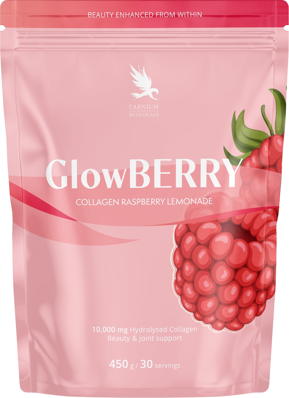 GlowBERRY is een frisse, heerlijke drank met 10.000 mg gehydrolyseerd collageen, 125 mg hyaluronzuur en de essentiële micronutriënten vitamine C en zink. De formule wordt afgerond met acai en rozenbottel. Collageen is een natuurlijk voorkomend structureel eiwit in het lichaam, maar de lichaamseigen productie neemt af naarmate je ouder wordt.