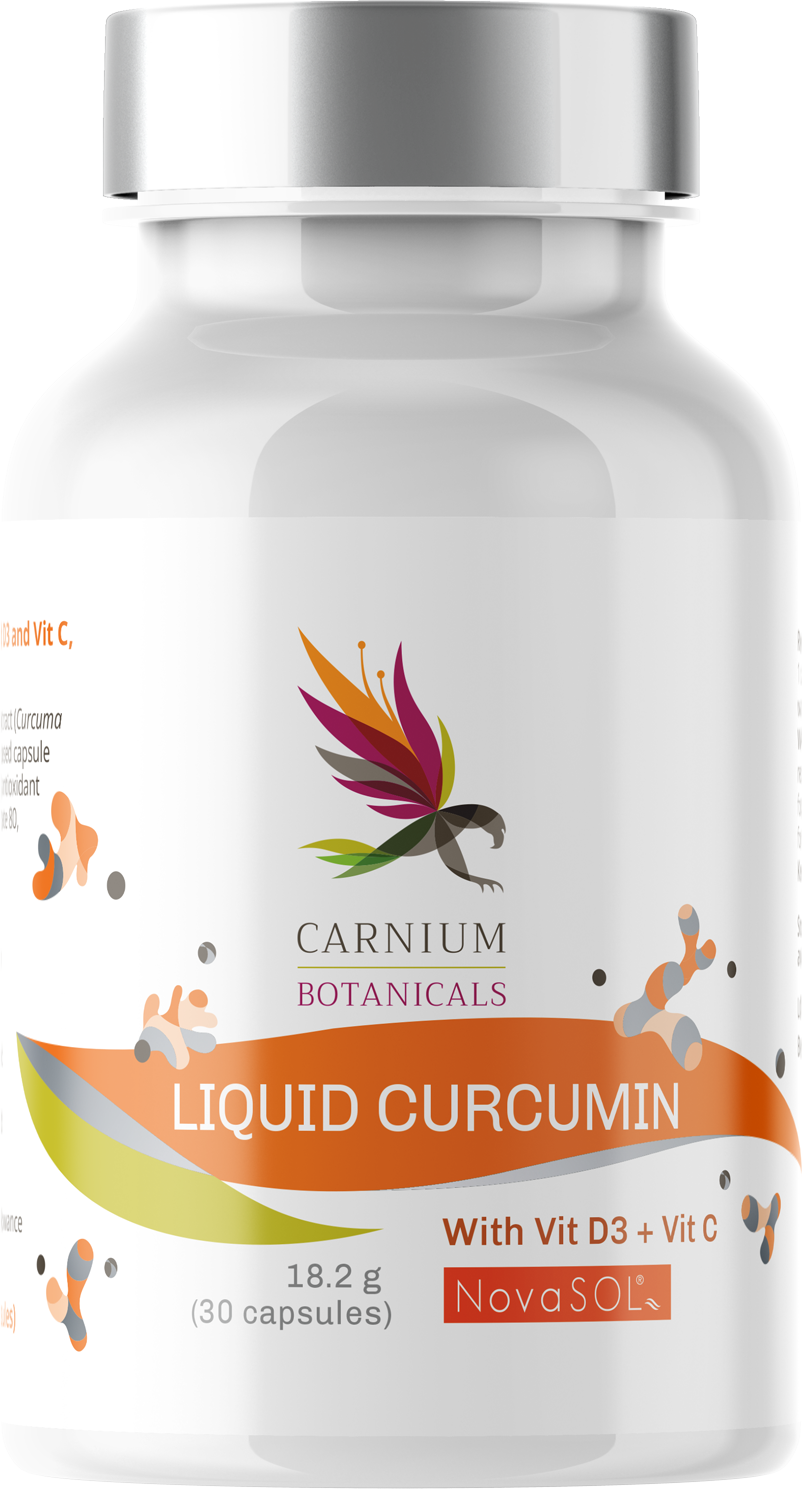 De Liquid Curcumin capsules van Carnium Botanicals combineren curcuminoïden, vitamine C en vitamine D3. De capsules zijn vrij van gluten en conserveringsmiddelen en bieden je optimale ondersteuning in je dagelijks leven.