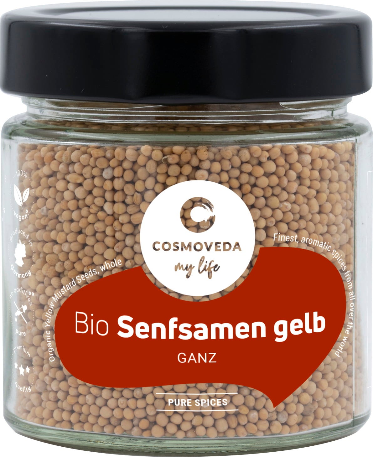 De gele mosterdzaadjes van Cosmoveda geven ingelegde groenten, augurken en kerriemengsels een pittig, licht nootachtig tintje.