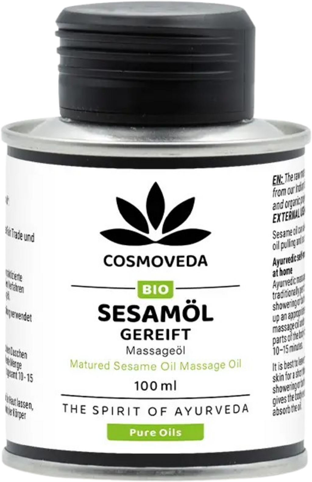 Sesamolie - al duizenden jaren bekend en gebruikt als massageolie in de Ayurveda. Cosmoveda's Sesamolie is gerijpt volgens traditionele methoden en is daarom een eersteklas, biologische massageolie die geschikt is voor het masseren van alle delen van het lichaam.