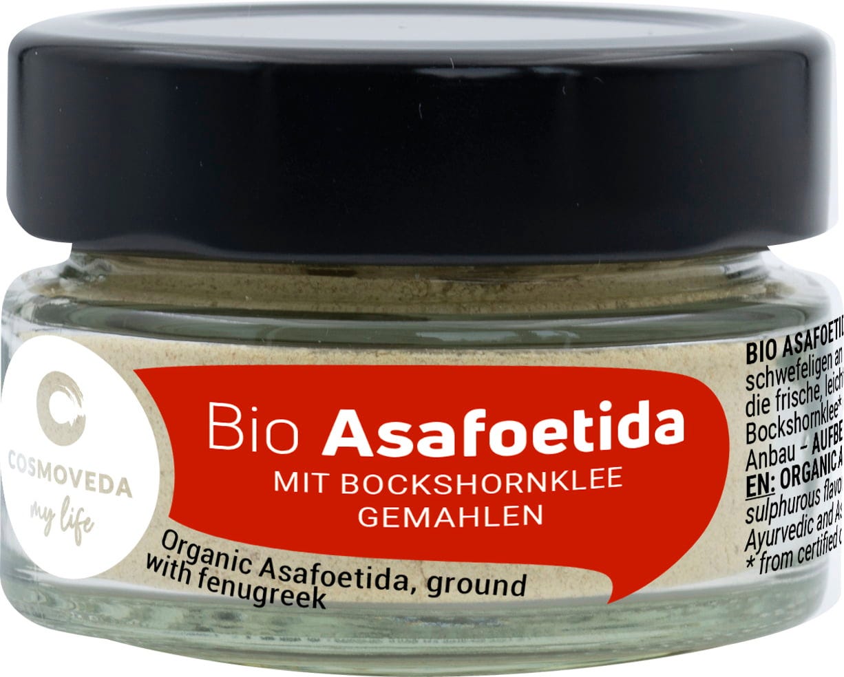 Asafoetida is een gomachtige, zwavelachtig ruikende hars van een plant afkomstig uit Pakistan. Asafoetida wordt spaarzaam toegevoegd tijdens het koken om de smaak van het voedsel te verbeteren.