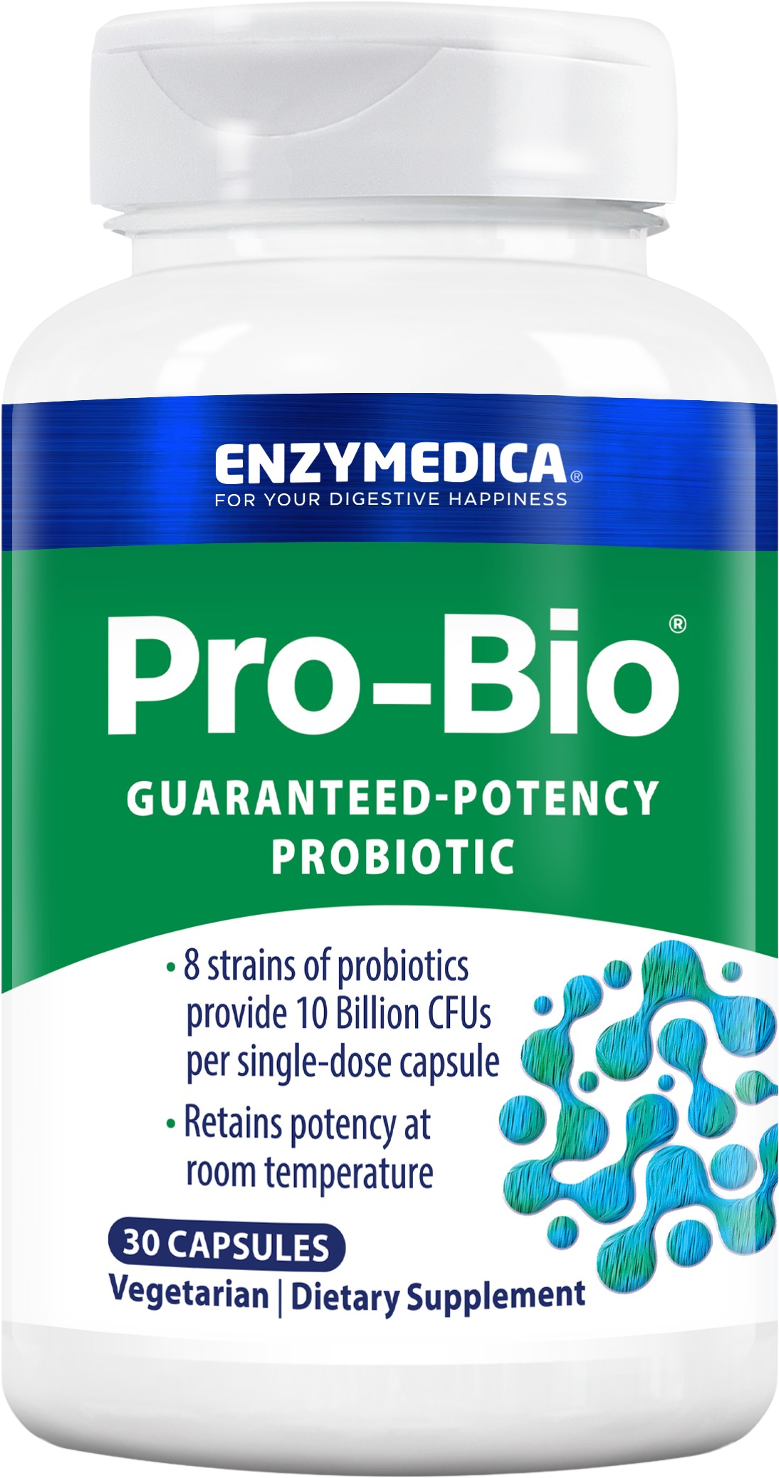Pro-Bio™ bevat een probiotische mix met 10 biljoen CFU per dagelijkse dosis in een capsulewand met een maagsapresistente coating.