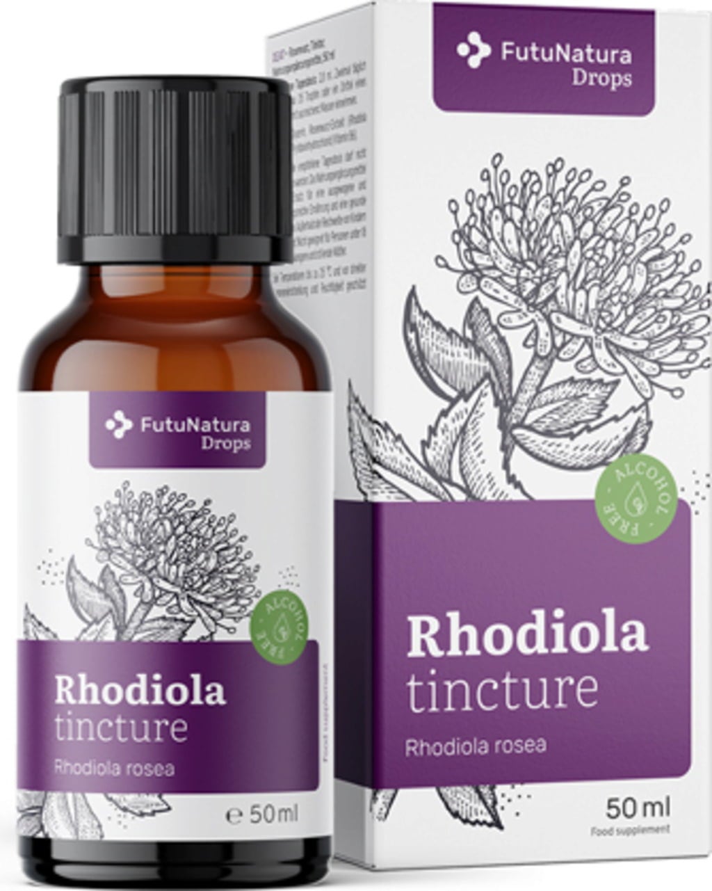 Rozewortel tinctuur maakt deel uit van de FutuNatura Drops productlijn en is verpakt in een flesje met druppeldop, waardoor het gemakkelijk te doseren is.