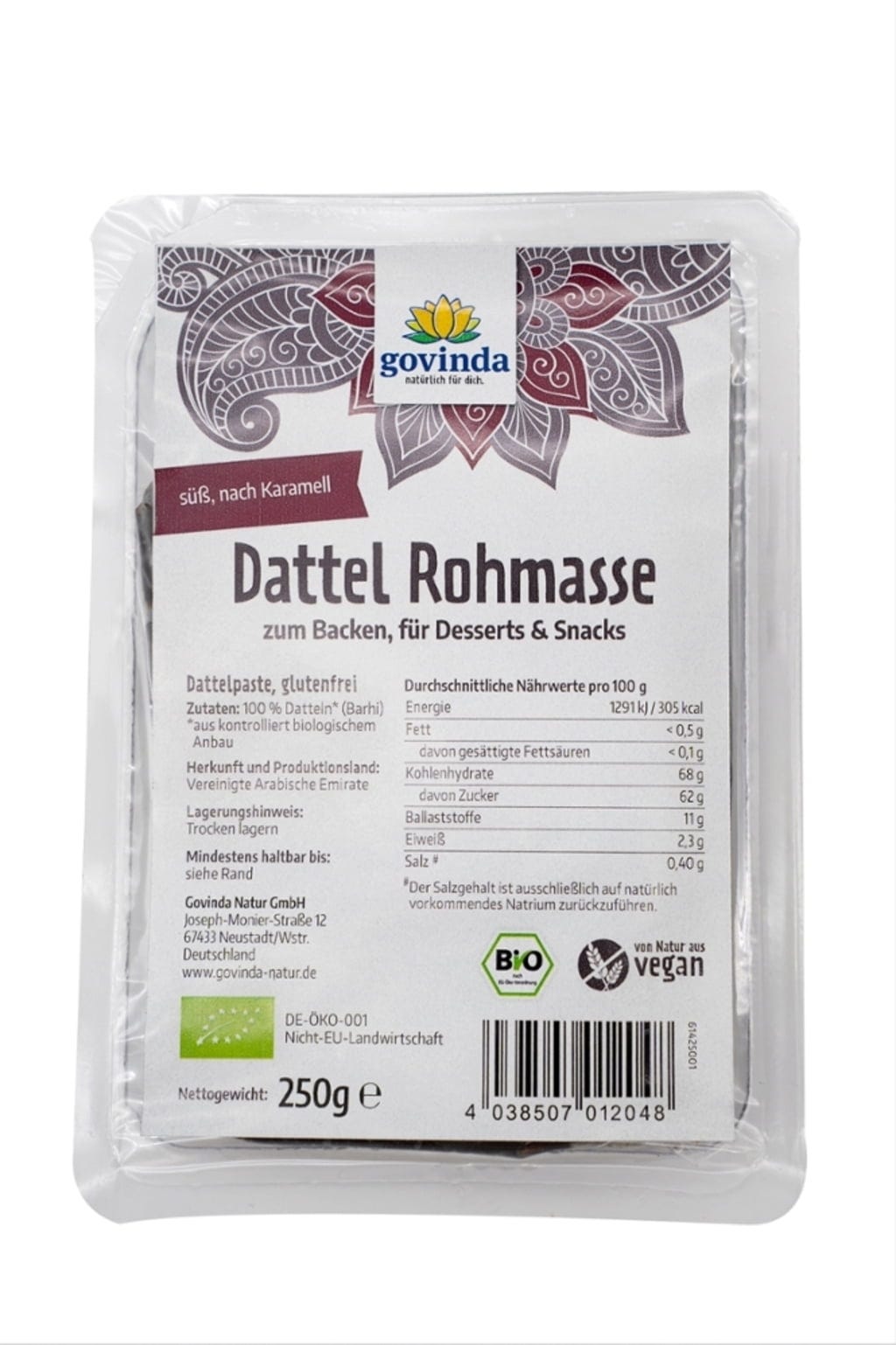 | Verantwoordelijk voedingsbedrijf: | Govinda Natur GmbH, Joseph-Monier-Straße 12, 67433, Neustadt an der Weinstraße, Duitsland, www.govinda-natur.de |