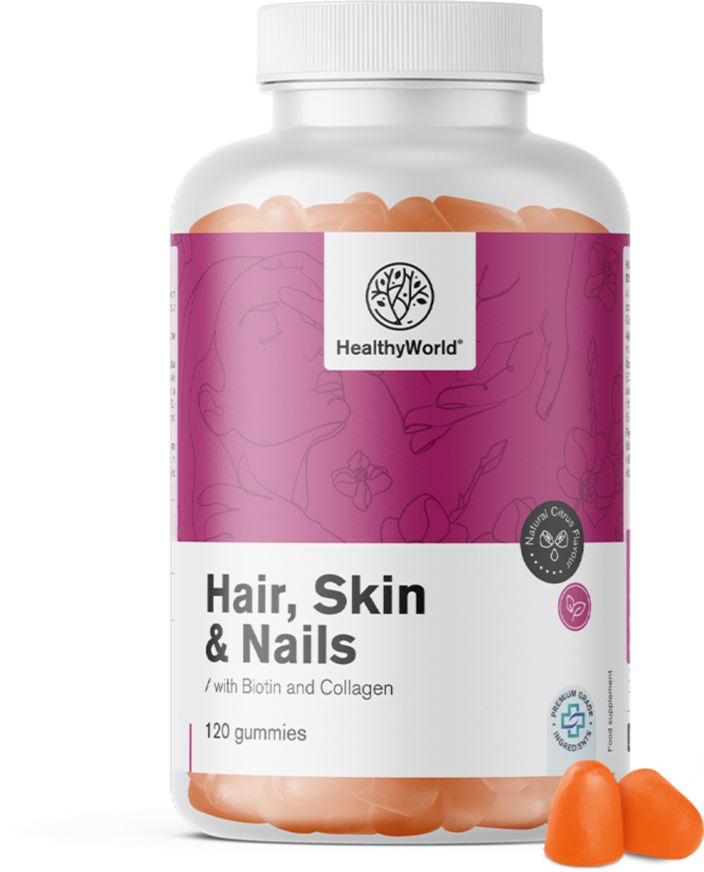HealthyWorld Hair, Skin & Nails met Biotine, 120 Gummies