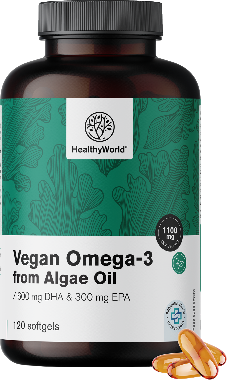 HealthyWorld Vegan Omega-3 1100 mg - from algae, 120 Softgels