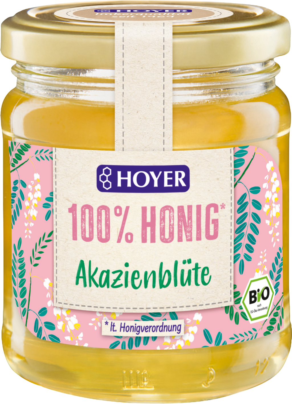 De nectar voor acaciahoning wordt door bijen verzameld in natuurlijke bossen in Hongarije en Roemenië. Acaciahoning is afkomstig van de robinaboom. De witte bloesems van deze bomen hullen de bossen in de vroege zomer in een verleidelijke geur die de bijenvolken eenvoudigweg niet kunnen weerstaan. Net zo onweerstaanbaar is de lichte, vloeibare acaciahoning met zijn heerlijke smaak.