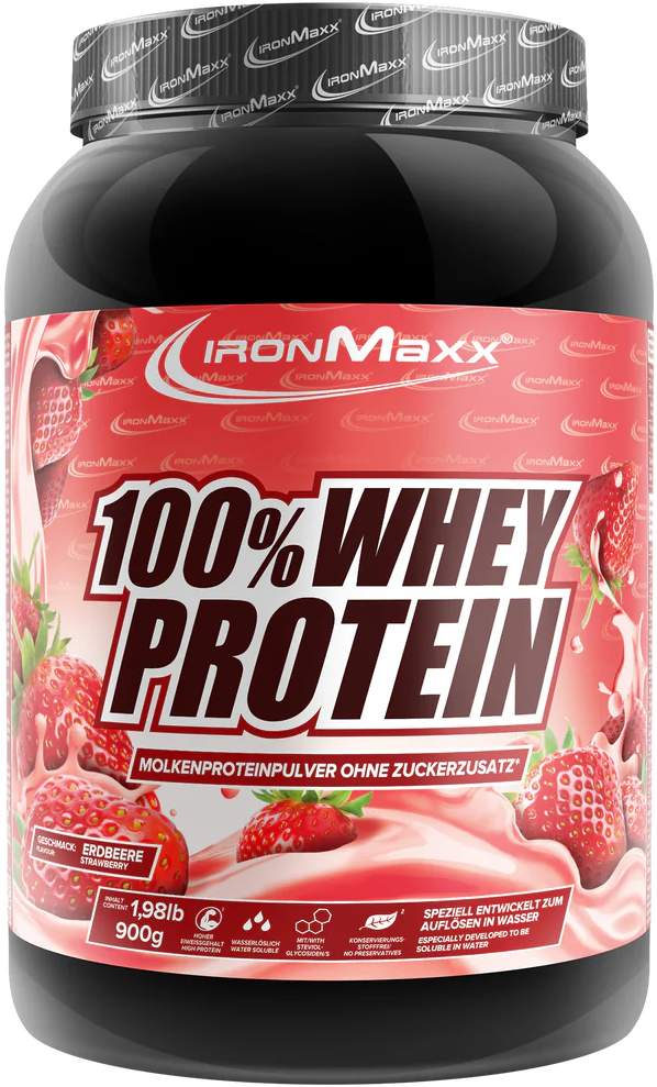 ironMaxx 100% Whey Protein, Aardbei (900 g)