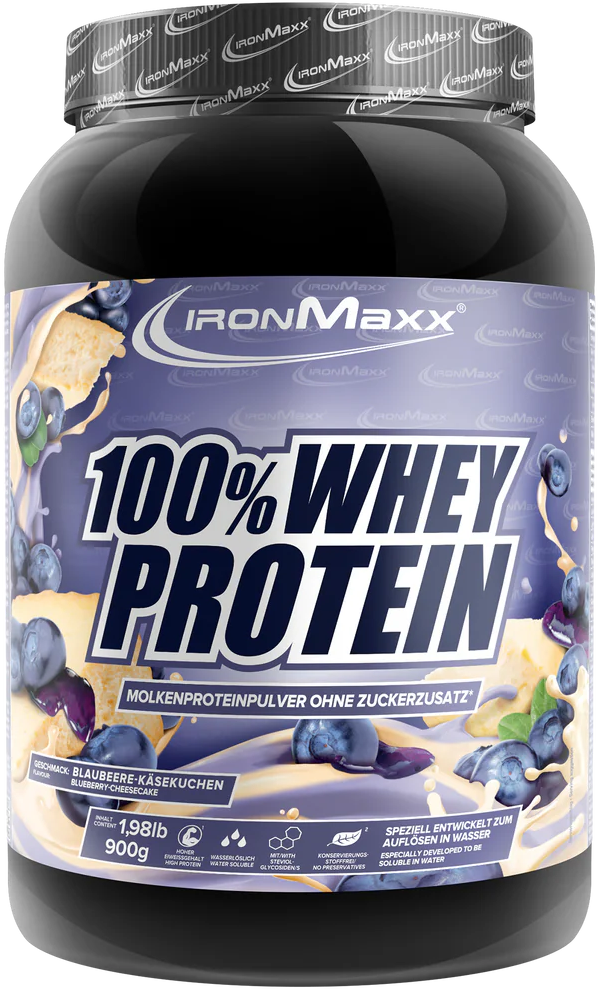ironMaxx 100% Whey Protein, Bosbessen-Cheesecake (900 g)