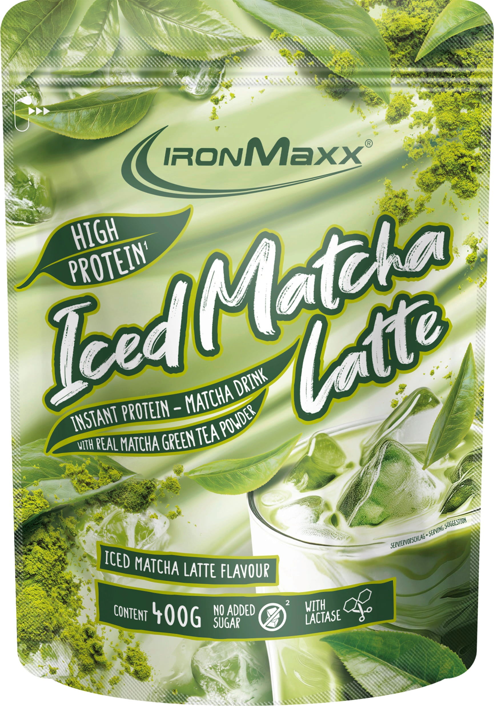 De High Protein Iced Matcha Latte van IronMaxx® combineert hoogwaardig wei-eiwit met echte matcha groene thee tot een romige, verfrissende eiwitshake. Gewoon mengen met koude amandeldrank of een ander plantaardig alternatief - perfect voor iedereen die van bewust genieten en proteïnekracht houdt.