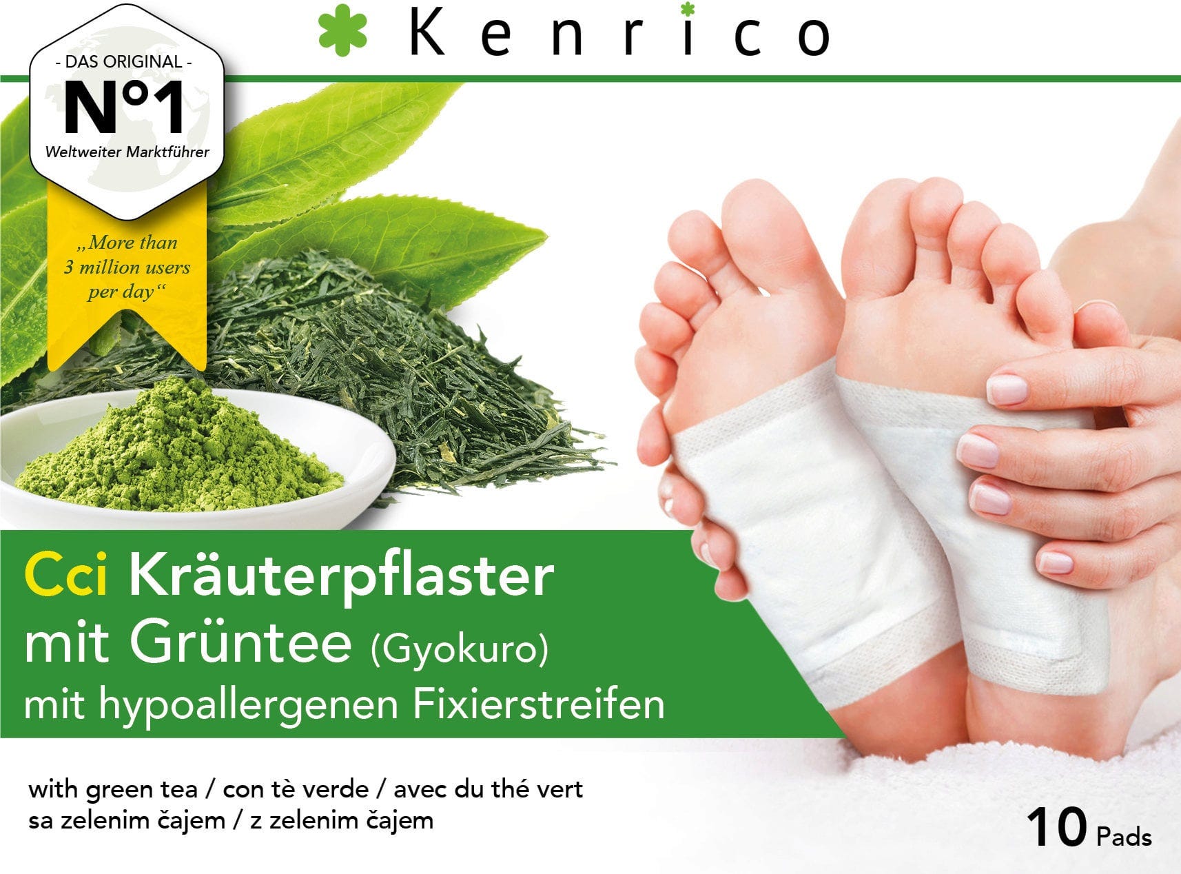 - KENRICO® kruidenpleisters uit Japan zijn sachets gevuld met natuurlijke ingrediënten, die met fixeerpleisters op de reflexzones van de voetzolen worden bevestigd.