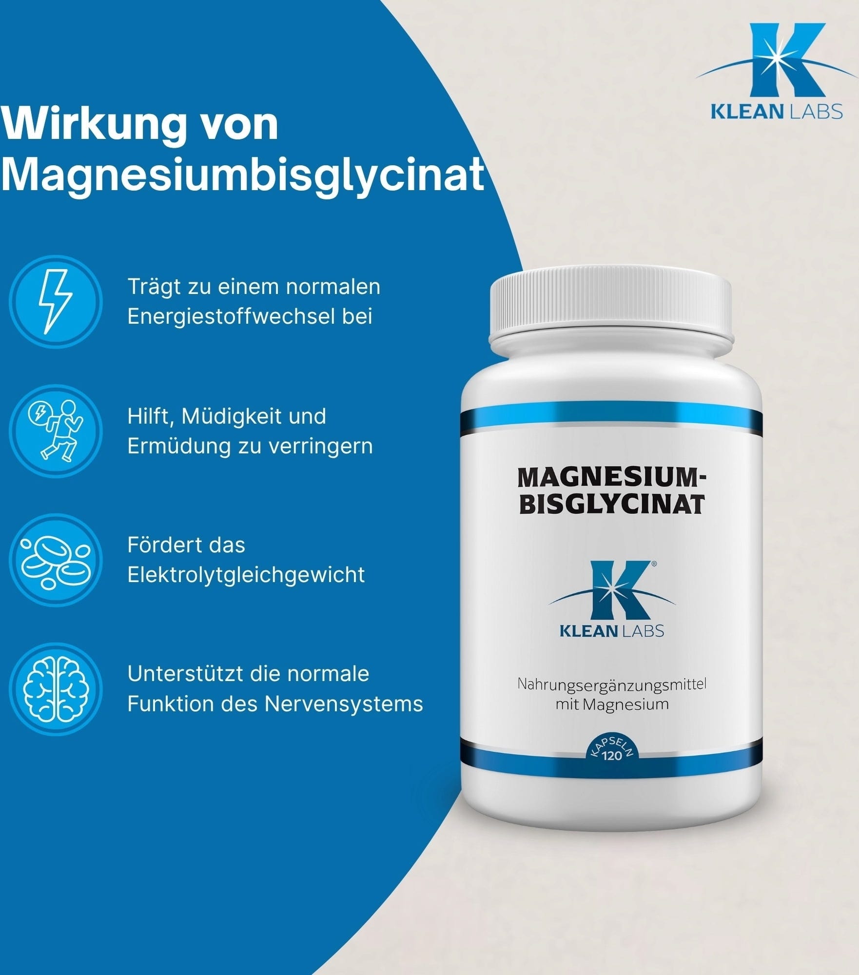KLEAN LABS Magnesiumbisglycinaat, 120 Capsules