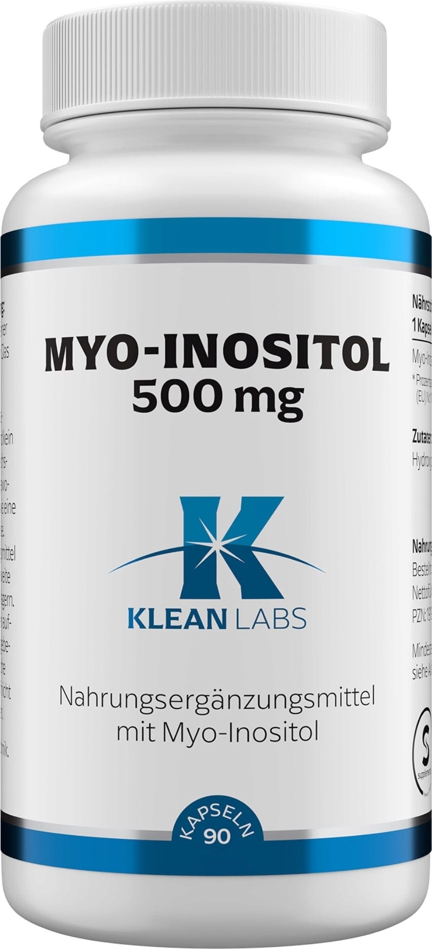 KLEAN LABS Myo-Inositol 500 mg, 90 Capsules