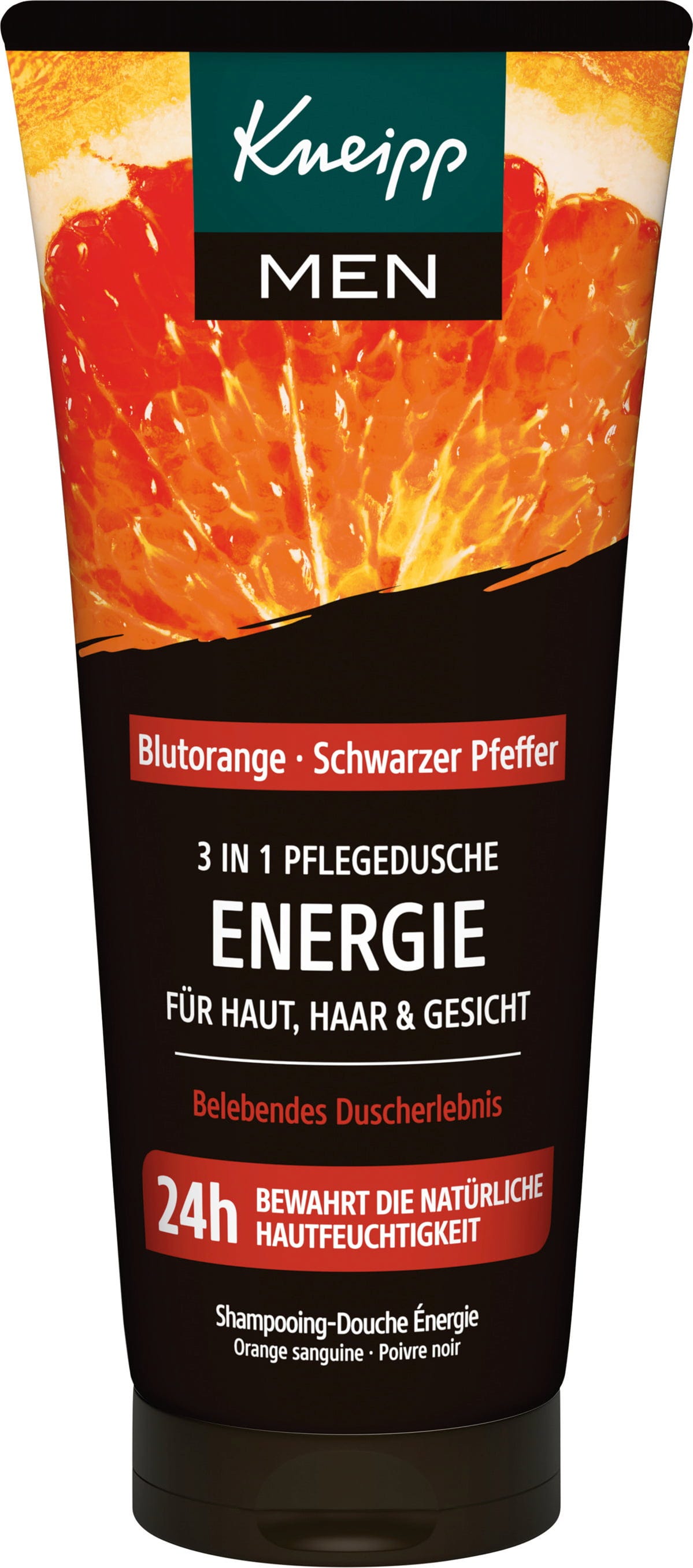Deze 3in1 douchegel van Kneipp reinigt de huid, het haar en het gezicht in één stap. De vegan formule met etherische bloedsinaasappelolie en zwarte peper-extract zorgt voor een frisse, kruidige geur en helpt het natuurlijke vocht van de huid vast te houden - ideaal voor verfrissende momenten onder de douche.