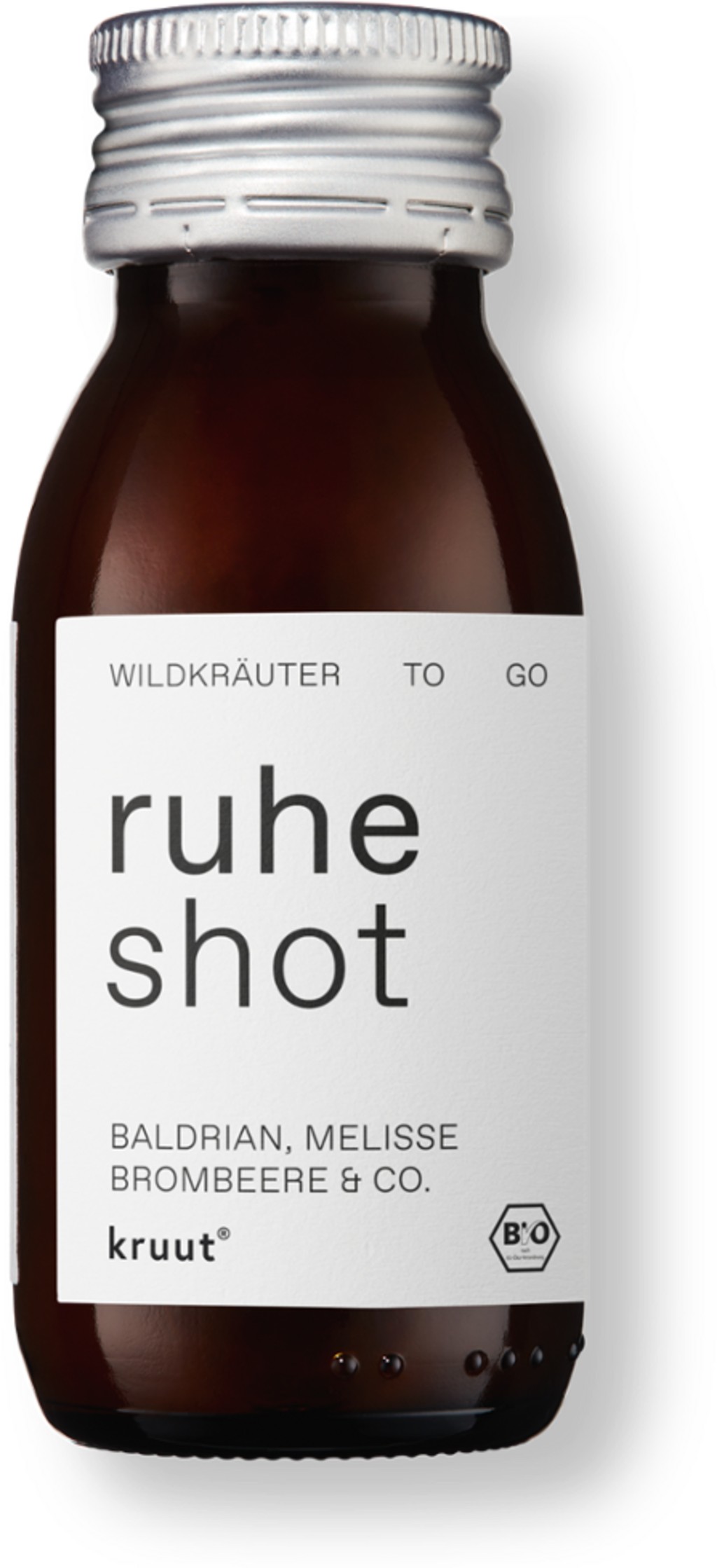 De kruut Rust Shot Bio combineert een traditioneel recept van troebele Demeter-appelazijn en rauwe bloemenhoning met fruitige braam en geselecteerde plantenextracten. De compositie bevat extracten van citroenmelisse, haverstro, valeriaanwortel en jonge sparrenscheuten.