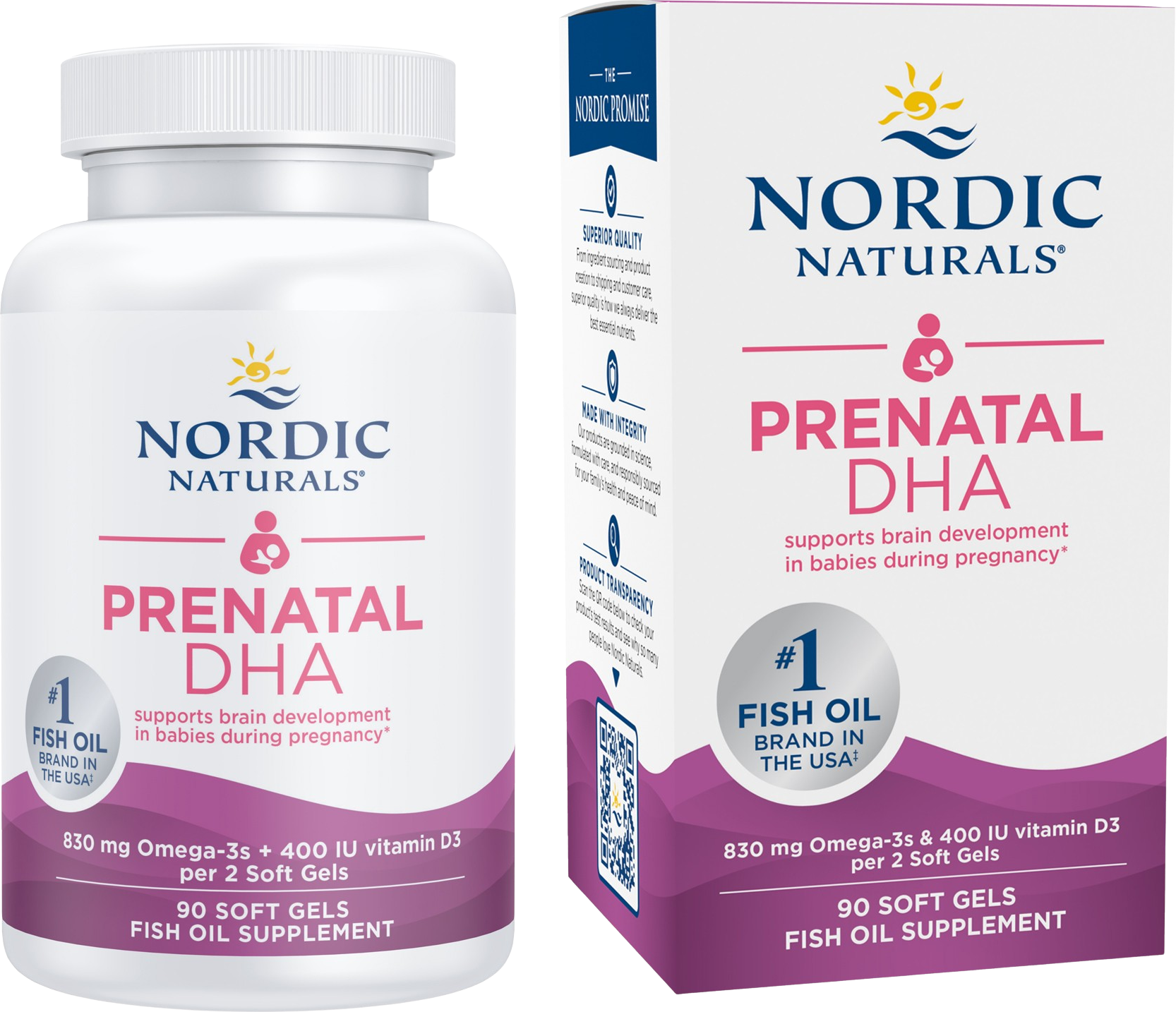 Prenatal DHA van Nordic Naturals is ideaal als aanvulling met omega 3-vetzuren voor en tijdens de zwangerschap en tijdens het geven van borstvoeding. Naast de DHA-dominante vetzuren bevat Prenatal DHA 400 IE natuurlijke vitamine D3 per dagportie.