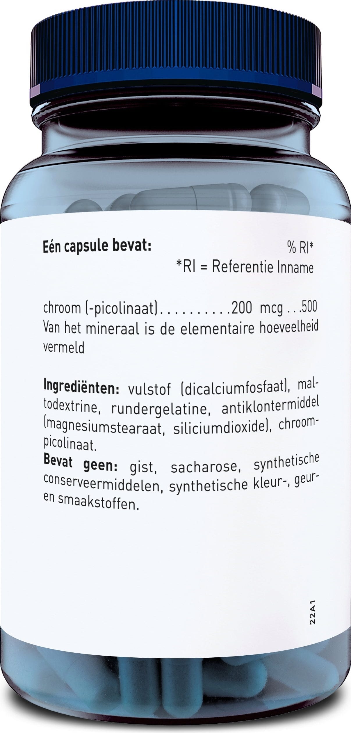 vulstof (Calciumphosphate), Maltodextrin, capsule (rundergelatine), anti-klontermiddel (Magnesiumsalze von Speisefettsäuren, Siliciumdioxid), chroompicolinaat
