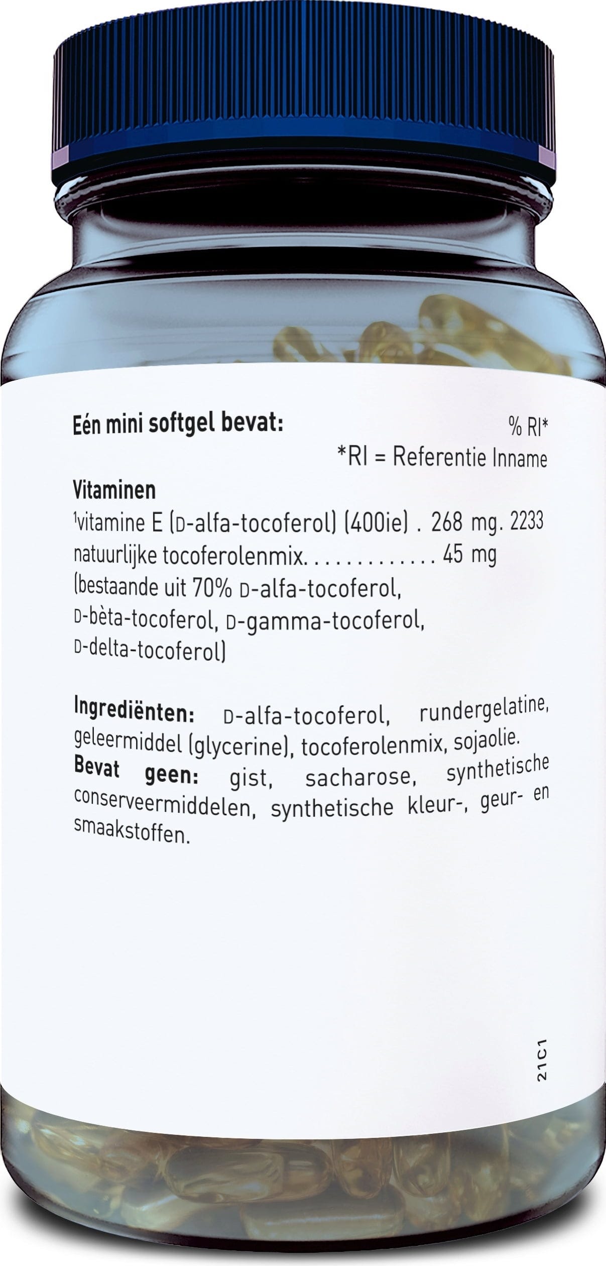 Eén capsule bevat 268 mg a-TE van de vetoplosbare vitamine. Het product is gebaseerd op natuurlijke ingrediënten en is vrij van kunstmatige conserveringsmiddelen, kleur- en smaakstoffen, suiker en gist.