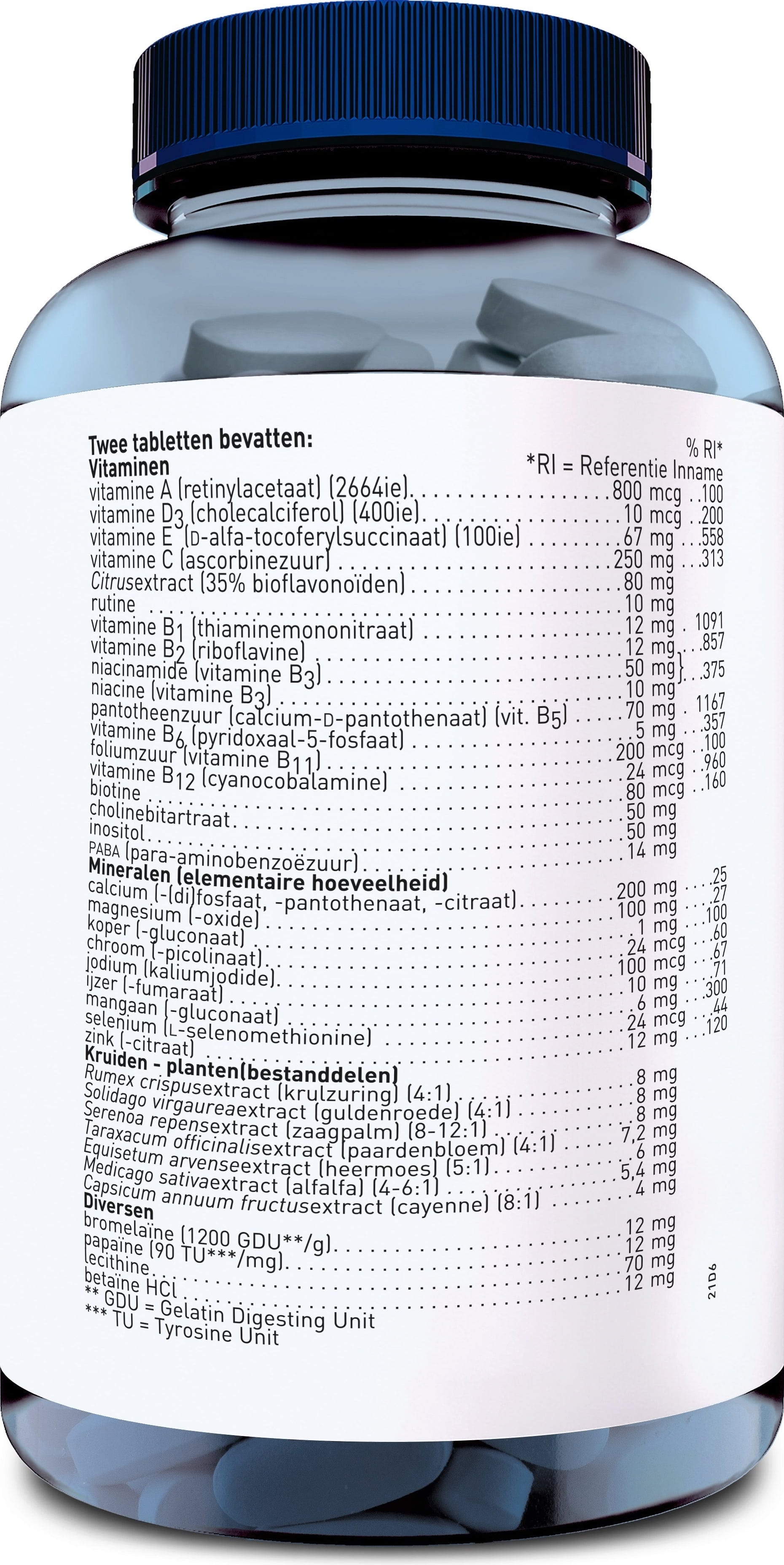 | Samenstelling | per maximale dagelijkse dosis/portie (1 Tablet) |