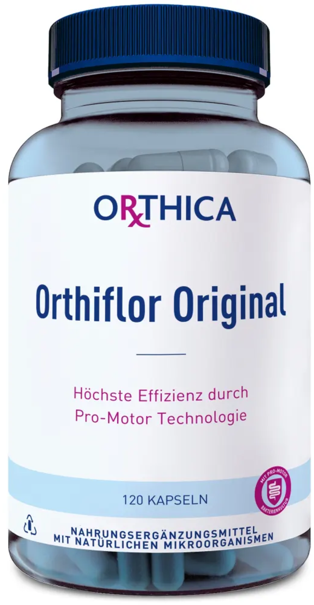 Orthiflor Original bevatten negen verschillende melkzuurvormende micro-organismen zoals Bifidobacterium en Lactobacillus soorten, die in een bepaalde hoeveelheid per capsule aanwezig zijn - weergegeven als kolonievormende eenheden (CFU). De formule maakt ook gebruik van de zogenaamde Pro‑Motor‑Technologie, die een flexibele en ongecompliceerde inname zonder koeling mogelijk maakt.