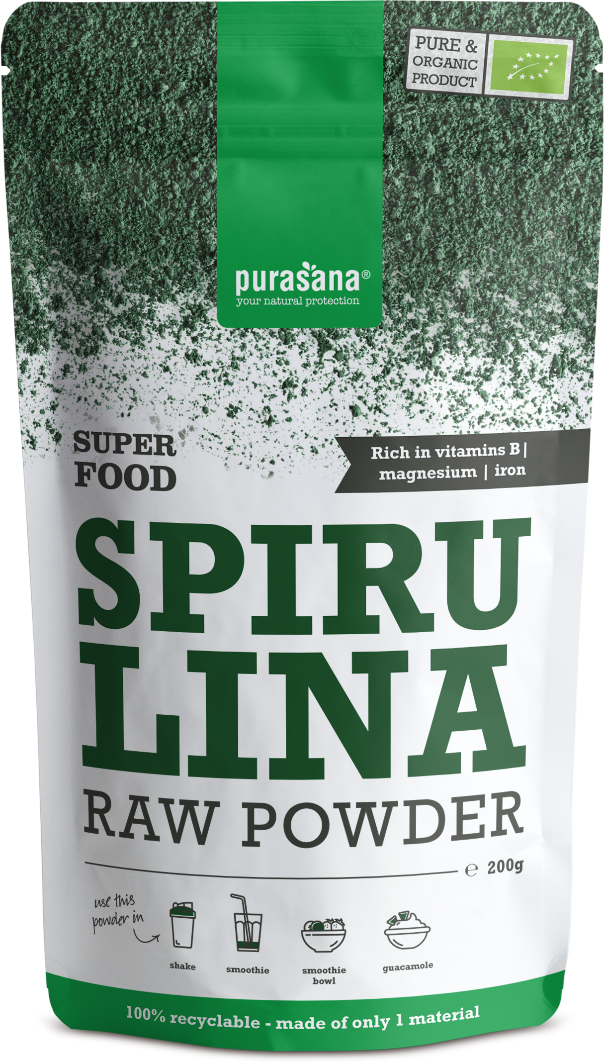 Purasana Spirulina Poeder BIO, 200 g