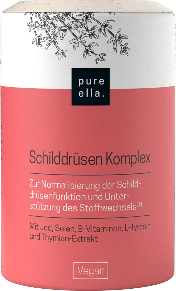 De schildklier is van groot belang voor veel processen in het menselijk organisme. Hij beïnvloedt bijvoorbeeld veel stofwisselingsprocessen, het cardiovasculaire systeem en de hersenactiviteit. Deze schildkliercomplex capsules van Pure Ella bevatten een waardevolle formule verrijkt met natuurlijk jodium uit kelp bruine algen, selenium, L-tyrosine, B-vitamines en tijmkruid. De formule is vegan en hormoonvrij.