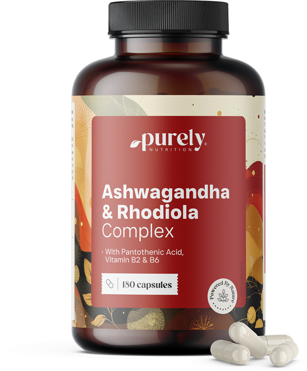 Het Ashwagandha & Rhodiola Complex van Purely Nutrition combineert twee traditionele plantenextracten met B-vitamines - zorgvuldig uitgebalanceerd voor gemakkelijke inname. De capsules bevatten gestandaardiseerde extracten van ashwagandha en rozewortel, evenals riboflavine (vitamine B2), pantotheenzuur (vitamine B5) en pyridoxine (vitamine B6). De vitaminen zijn samen met de plantenextracten samengesteld om een evenwichtig supplement te bieden.