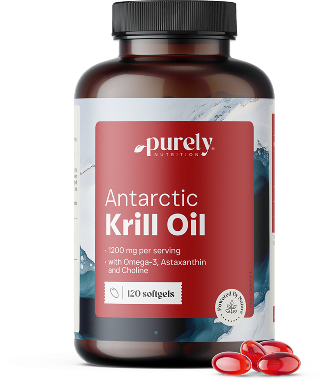 Antarctisch krill is een piepklein planktonachtig garnaaltje dat leeft in de koude wateren van Antarctica en andere oceanen. Hoewel het krill maar een paar centimeter groot is, is het rijk aan de belangrijke omega 3-vetzuren EPA en DHA. De softgel capsules van Purely Nutrition zijn ook verrijkt met astaxanthine - een natuurlijke rode kleurstof die de olie beschermt tegen oxidatie. Choline ondersteunt je lichaam ook bij veel processen.