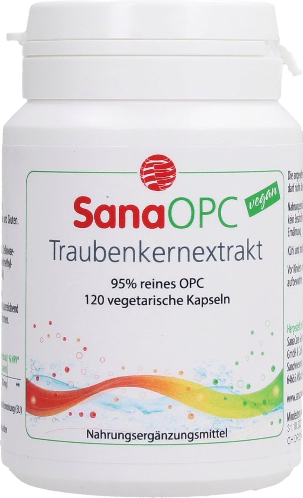 SanaOPC is een 95% zuiver druivenpitextract met een gehalte van 100 mg per capsule.