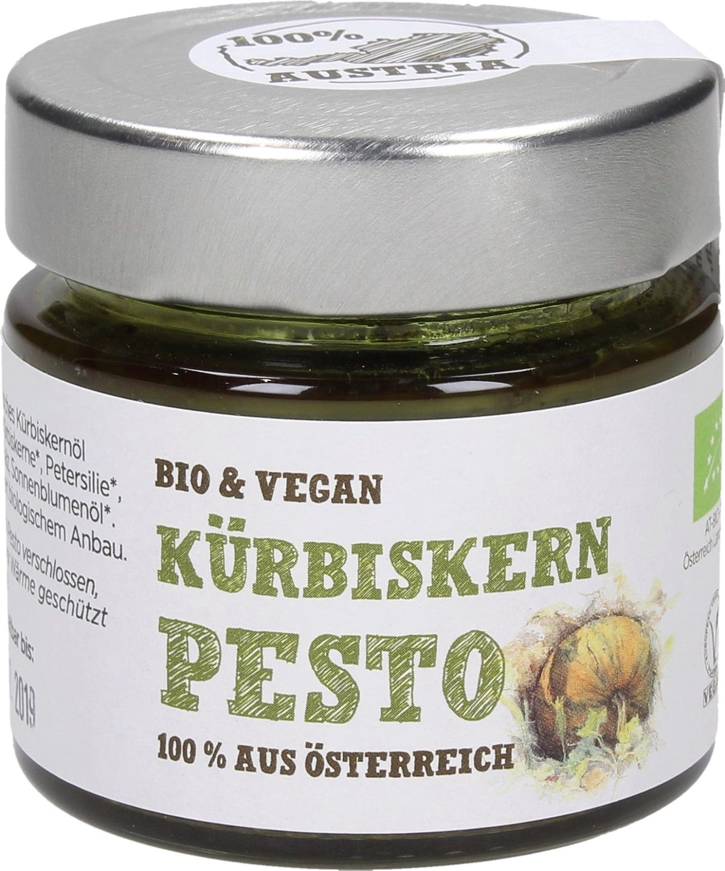 Deze pompoenpittenpesto komt van een klein familiebedrijf met een lange traditie. Het rijke aandeel van onze Stiermarkse pompoenpitolie BGA, de Stiermarkse pompoenpitten BGA en andere uitgelezen ingrediënten maken van onze pompoenpittenpesto een ware streling voor het gehemelte
