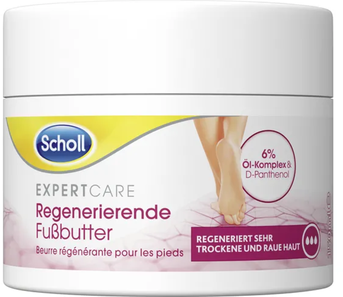 De ExpertCare Regenererende Voetboter van Scholl is een hydraterende voetverzorging die de huid diep voedt. Een oliecomplex en D-panthenol zorgen voor een intensieve verzorging, speciaal voor de zeer droge huid. De voetboter is ook ideaal om 's nachts te gebruiken.