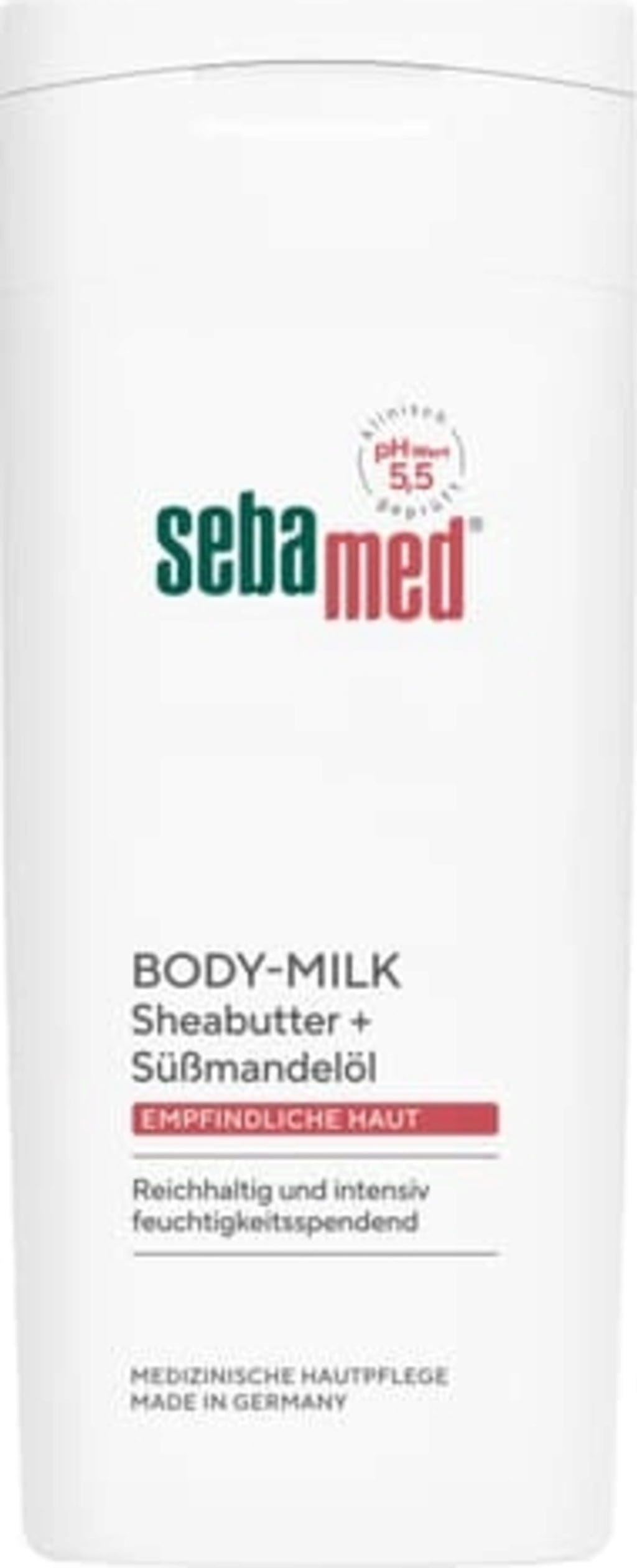 Help je gevoelige huid soepeler te maken en te verzorgen met de rijke Body Milk van sebamed. De bodymilk bevat sheaboter, zoete amandelolie en panthenol, waardoor je huid er glad en zacht uitziet. Daarnaast voorziet de bodymilk je huid van essentieel vocht.