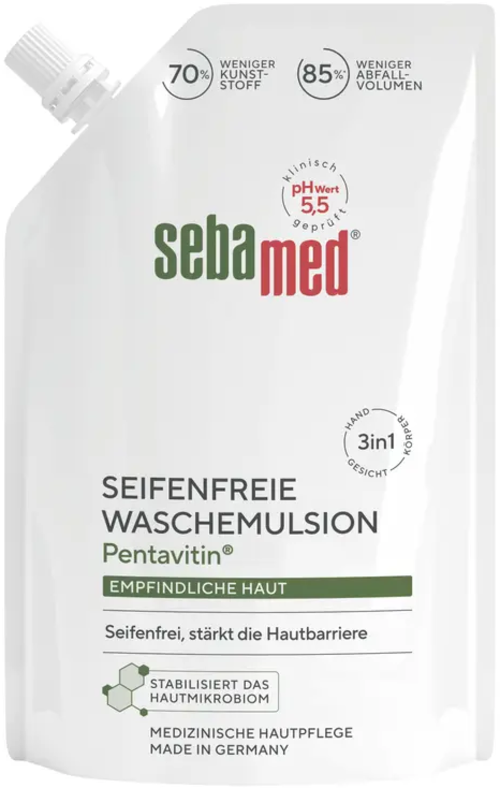 De zeepvrije wasemulsie met Pentavitin® van sebamed reinigt de gevoelige huid met milde bestanddelen. Panthenol en glycerine vormen bovendien een waardevol verzorgingscomplex dat de huid optimaal ondersteunt.