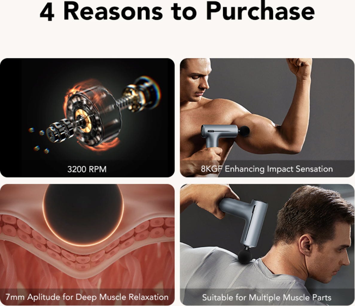 - 4 massage-opzetstukken: Ideaal voor verschillende spiergroepen