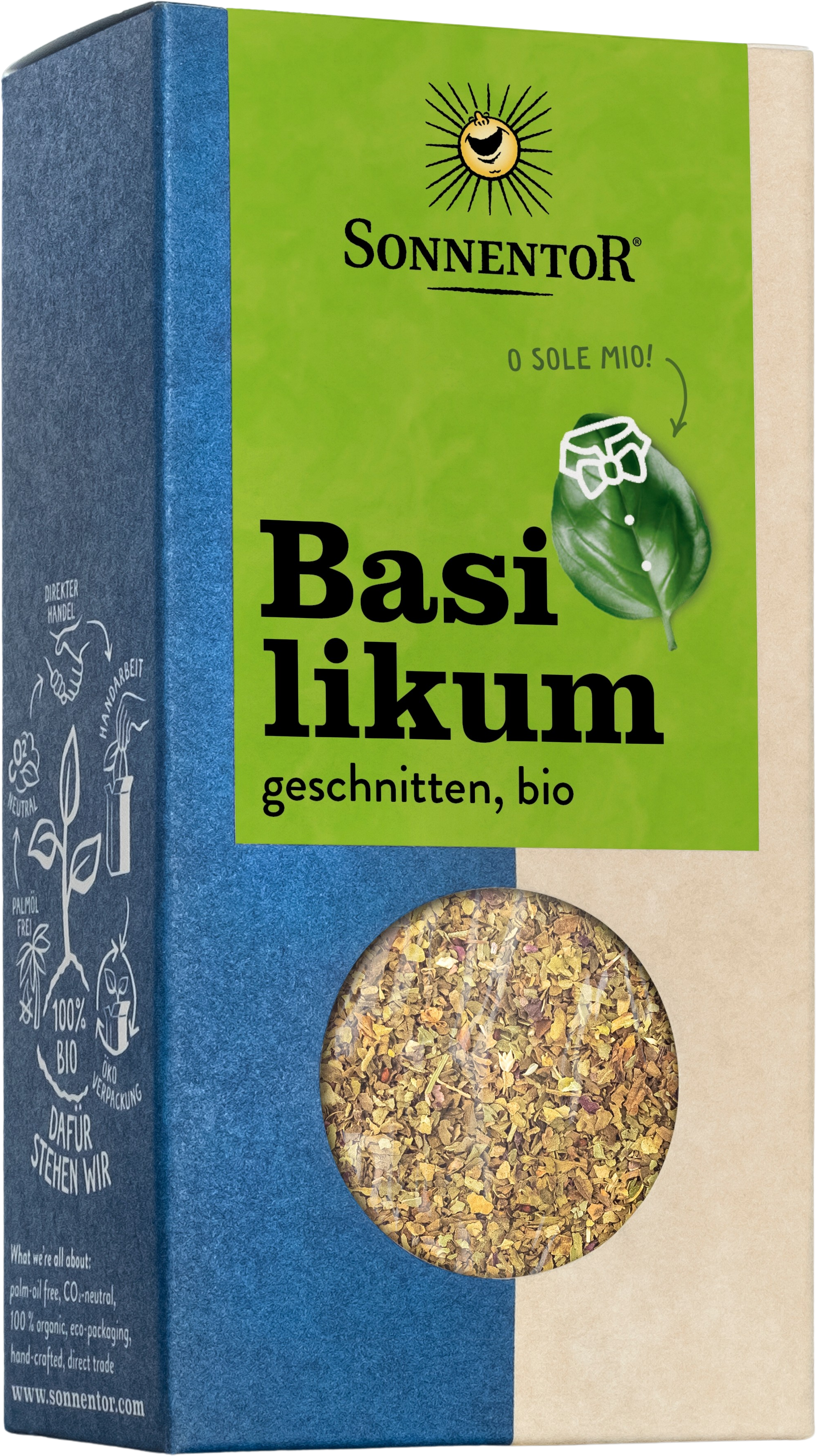 Of het nu voor pesto of pasta is, basilicum is het best bewaarde geheim van de Italiaanse keuken. Behalve in tomatengerechten, kan deze specerij ook op andere manieren worden gebruikt waaronder pesto, pomodoro etc. Het onmiskenbare, mediterrane aroma van basilicum bekoort met bloemige nuances. Zoete facetten zijn te vinden in de fris-kruidige smaak, die wordt afgerond door een milde kruidigheid.