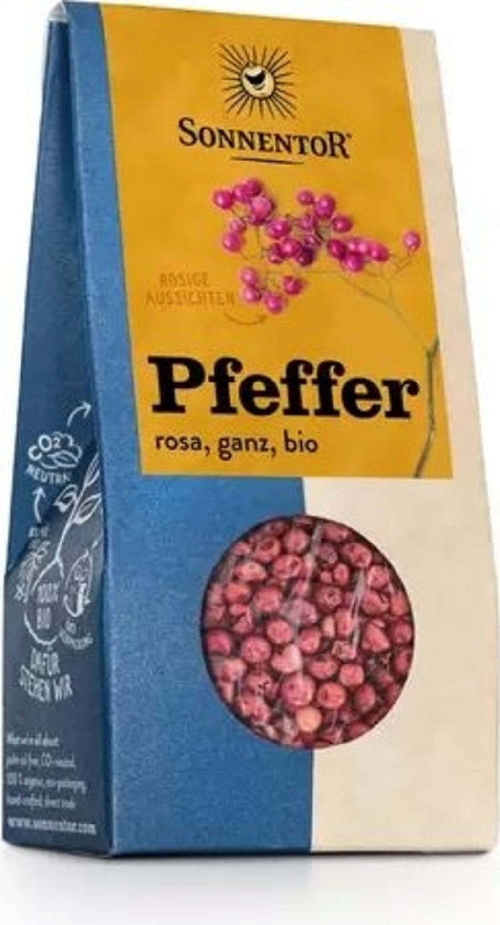 Roze peper behoort tot de familie van de Anacardiaceae (sumak). De Schinusboom heeft roze, besachtige vruchten die zoet, licht harsachtig zijn en qua smaak vergelijkbaar met jeneverbes. Roze peper wordt verbouwd in Peru, Brazilië en op het eiland Réunion.