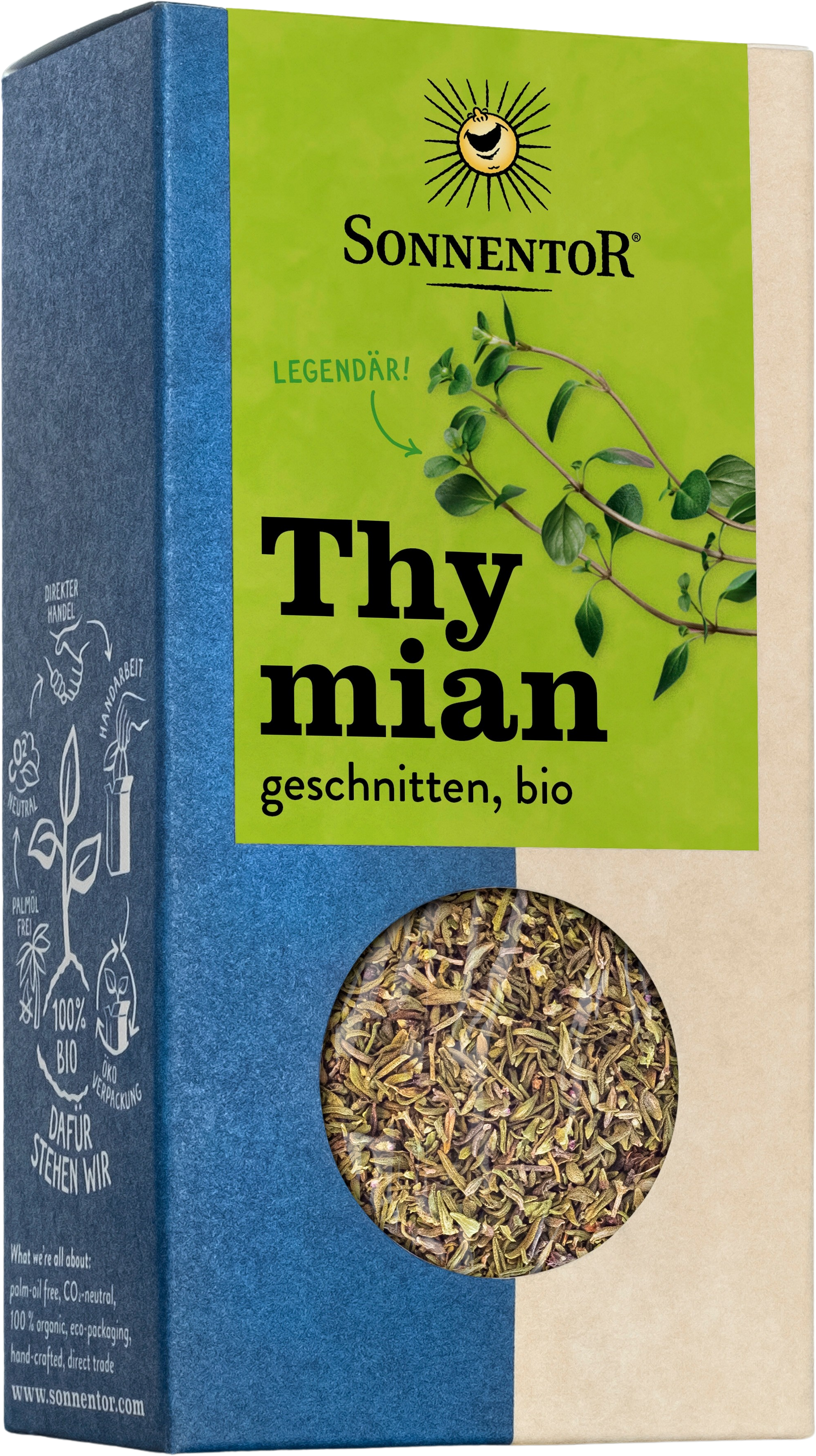 De aardse en peperige smaak heeft accenten van anijs, munt en kamfer en geeft mediterrane gerechten hun karakter. Tijm gaat heel goed samen met ui, wijn en bier. De intens kruidige, etherische geur met een vleugje dennennaalden doet denken aan de Middellandse Zee. Het accent van munt rondt de frisse smaak van tijm af.