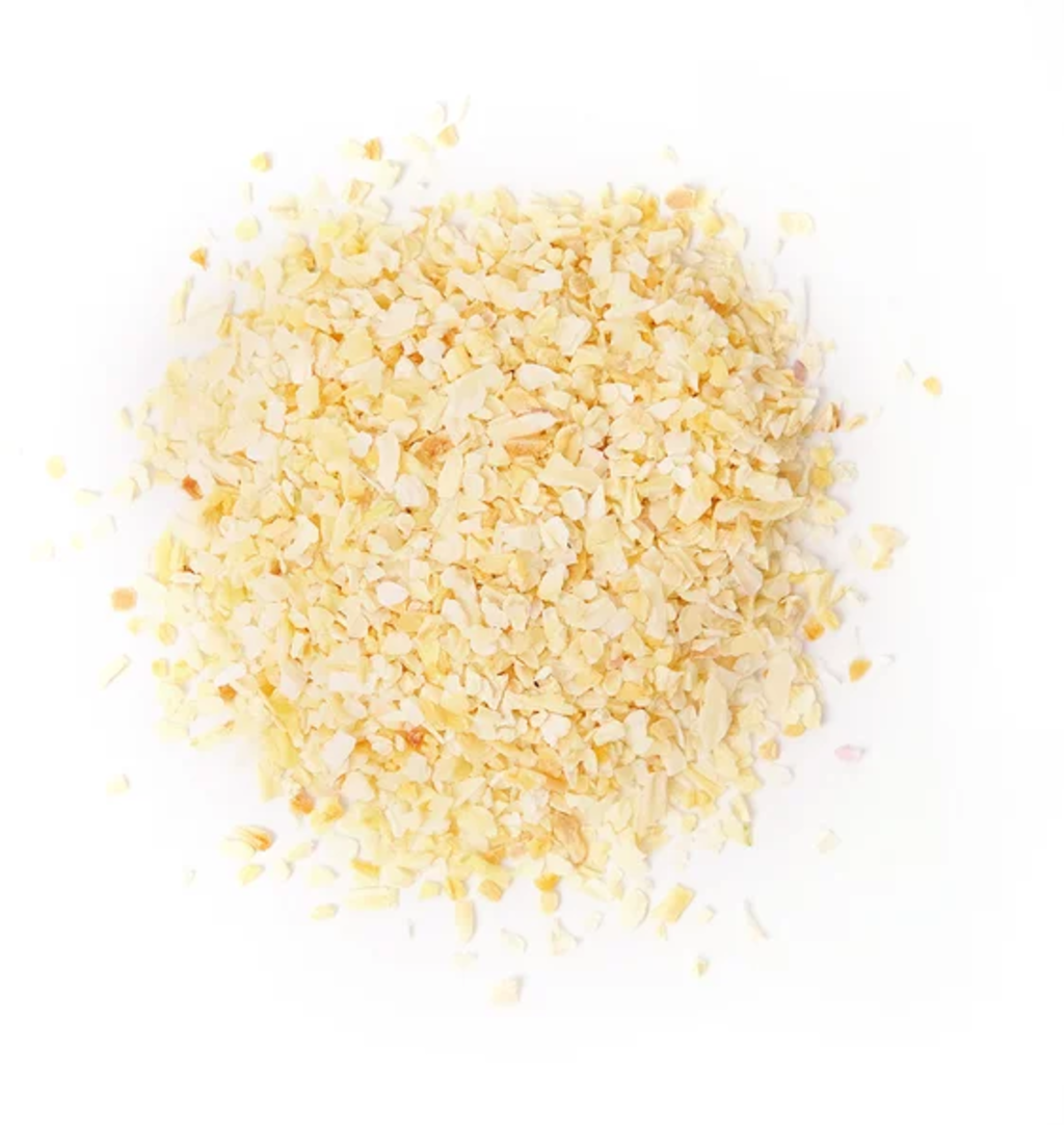Voor "verse" stukjes ui laat je de gedroogde uienkorrels in een beetje water weken en laat je ze een paar minuten trekken.