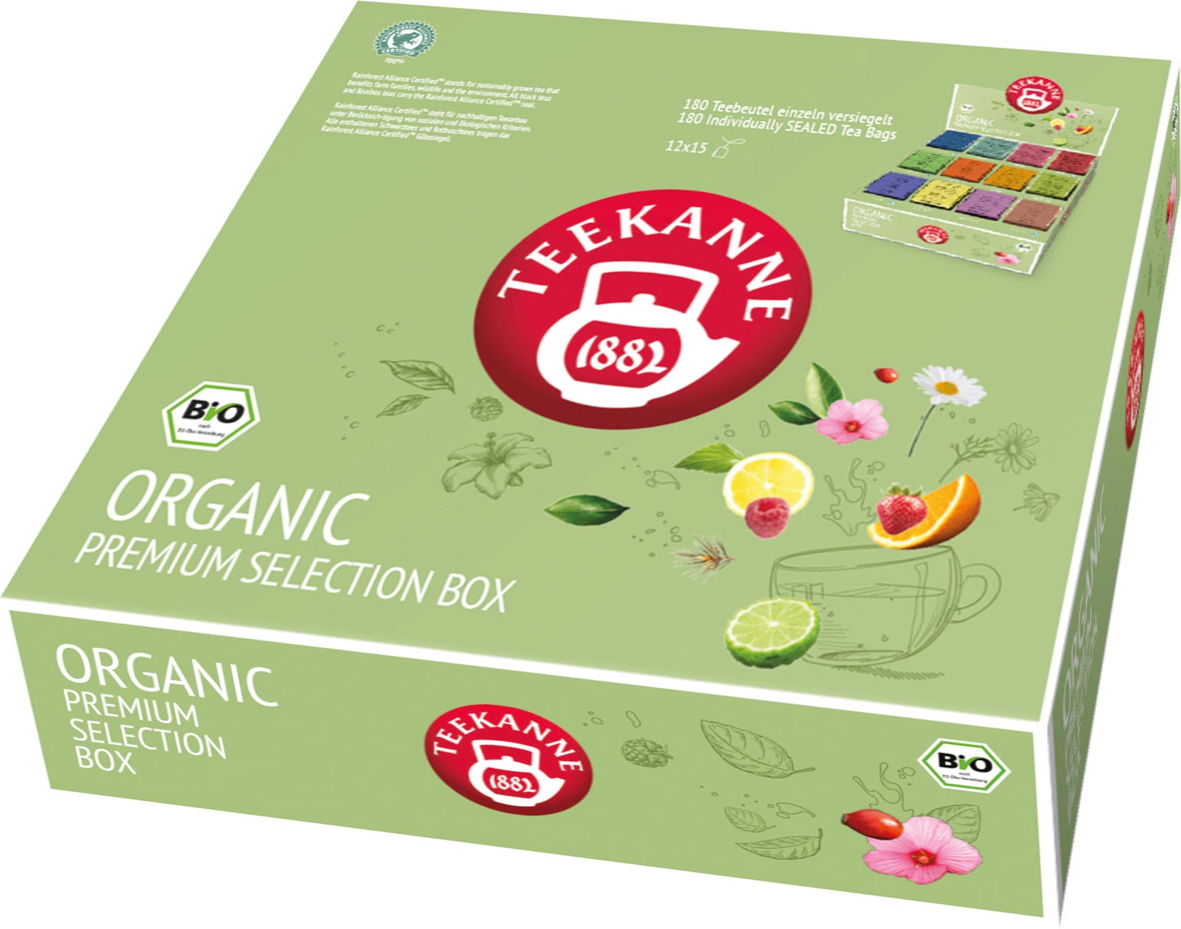 Ontdek je favoriete thee in de beste biologische kwaliteit met de Organic Premium Selection Box van Teekanne. Ideaal voor gastronomische en gepassioneerde theedrinkers die van afwisseling houden.