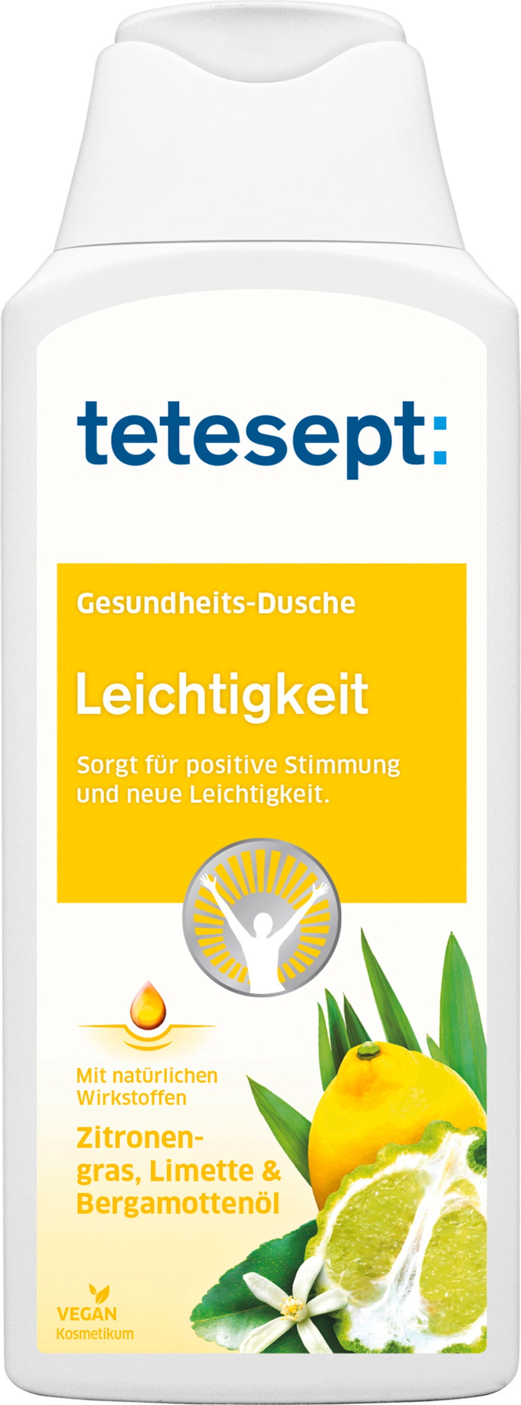 Deze douchegel van tetesept zorgt voor een portie lichtheid in het dagelijks leven. De zacht schuimende formule is pH-neutraal en vegan en zorgt voor een milde reiniging en zachte verzorging. Etherische oliën van citroengras, limoen en bergamot zorgen voor een frisse, heerlijke geur.