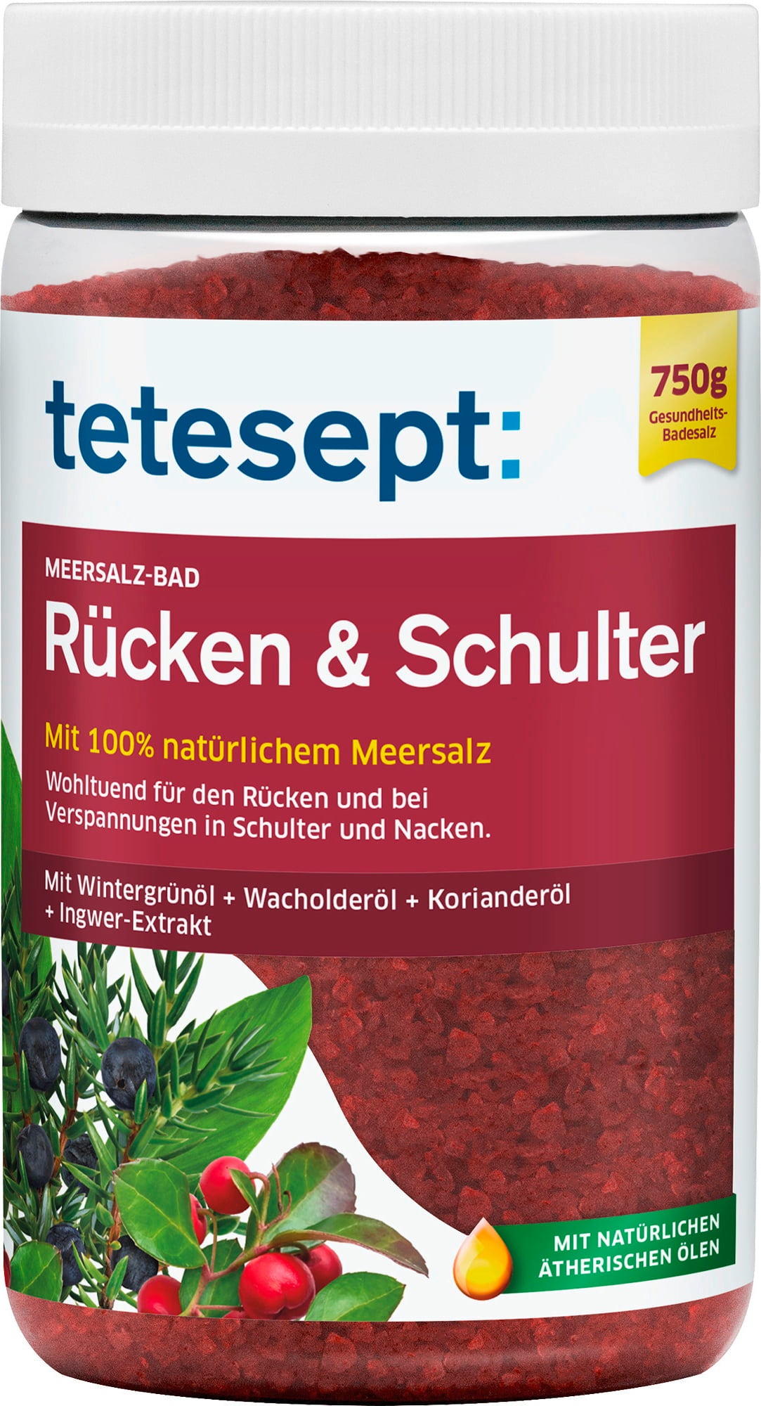 Een lange, inspannende dag kan je hele lichaam aantasten. Verwen je rug en schouders met dit badzout van tetesept! 100% puur natuurlijk zeezout, natuurlijke etherische oliën van wintergroen en jeneverbes en gemberextract veranderen je badkuip in de ideale plek om te ontspannen en tot rust te komen.